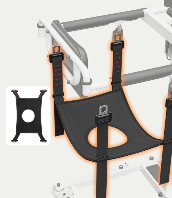 The Commode Sling is designed to make bathroom transfers safer, easier, and more comfortable. Its open-back design allows caregivers to assist users with toileting while maintaining dignity and support during transfers. Built with durable materials and a stable square shape, it provides reliable lifting support and a secure fit when used with the Electric Foldable Transfer Lift Chair.